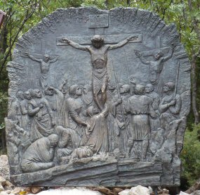 they are crucifying Our Lord, and with him two thieves, one on his right and one