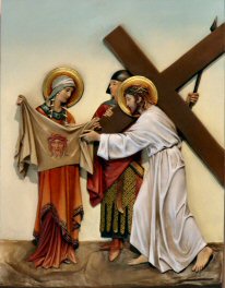 Let us pray: May the image of the suffering Savior be imprinted on our hearts and minds. May we behold his countenance in the faces of the sick, and the poor and in the victims of injustice, war, persecution and famine. Help us to act like Veronica here and now by practicing patience and compassion, putting up with one another's failings and helping one another at all times. Amen.