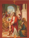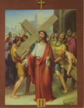 Offering no resistance, Jesus gives himself up to the execution of the sentence. He is to be spared nothing, and upon his shoulders falls the weight of the ignominious cross. But, through love, the Cross is to become the throne from which he reigns.