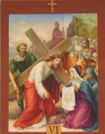 And it is the Son of God who is passing by, a madman . . . madly in Love! A woman, Veronica by name, makes her way through the crowd, with a white linen cloth folded in her hands, and with this she reverently wipes the face of Jesus. Our Lord leaves the impression of his Holy Face on the three parts of that veil.