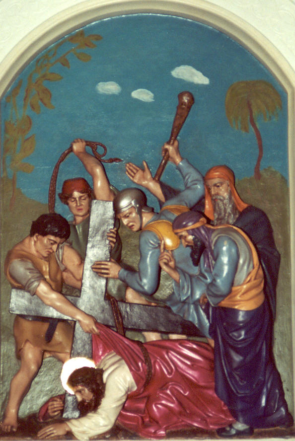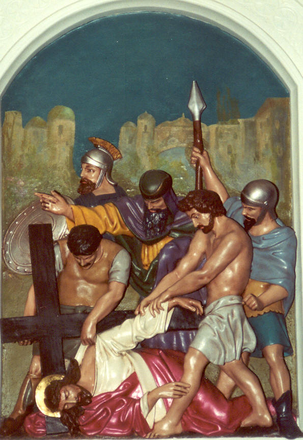Jesus falls the first time.
