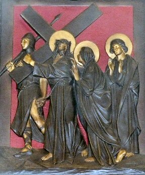 Hearing Jesus reproach the women of Jerusalem who follow him and weep for him ought to make us reflect. How should we understand his words? Are they not directed as a piety which is purely sentimental, one which fails to lead to conversion and living faith? It is no use to lament the sufferings of this world if our life goes on as usual. And so the Lord warns us of the danger in which we find ourselves. He shows us both the seriousness of sin and the seriousness of judgment. Can it be that, despite all our expressions of consternation in the face of evil and innocent suffering, we are all too prepared to trivialize the mystery of evil? Have we accepted only the gentleness and love of God and Jesus, and quietly set aside the word of judgment? :”How can God be so concerned with our weaknesses?”, we say. “We are only human!” Yet as we contemplate the sufferings of the Son, we see more clearly the seriousness of sin, and how it needs to be fully atoned if it is to be overcome. Before the image of the suffering Lord, evil can no longer be trivialized. To us too, he says: “Do not weep for me, weep for yourselves… if they do this when the wood is green, what will happen when it is dry?”.