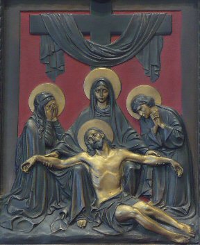 Jesus is dead. From his heart, pierced by the lance of a Roman solider, flow blood and water: a mysterious image of the stream of the sacraments, Baptism and the Eucharist, by which the Church is constantly reborn from the opened heart of the Lord. Jesus’ legs are not broken, like those of the two men crucified with him. He is thus revealed as the true Paschal Lamb, not one of whose bones must be broken (cf. Ex 12:46). And now, at the end of his sufferings, it is clear that, for all the dismay which filled men’s hearts, for all the power of hatred and cowardice, he was never alone. There are faithful ones who remain with him. Under the Cross stand May, his Mother, the sister of his Mother, Mary, Mary Magdalene and the disciple whom he loved. A wealthy man, Joseph of Arimathea, appears on the scene: a rich man is able to pass through the eye of a needle, for God has given him the grace. He buries Jesus in his own empty tomb, in a garden. At Jesus’ burial, the cemetery becomes a garden, the garden from which Adam was cast out when he abandoned the fullness of life, his Creator. The garden tomb symbolizes that the dominion of death is about to end. A member of the Sanhedrin also comes along, Nicodemus, to whom Jesus has proclaimed the mystery of rebirth by water and the Spirit. Even in the Sanhedrin, which decreed his death, there is a believer, someone who knows and recognizes Jesus after his death. In this hour of immense grief, of darkness and despair, the light of hope is mysteriously present. The hidden God continues to be the God of life, ever near. Even in the night of death, the Lord continues to be our Lord and Savior. The church of Jesus Christ, his new family begins to take shape.