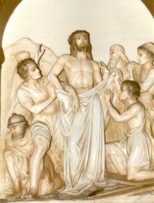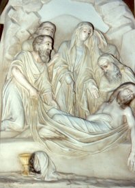 Very near Calvary, in an orchard, Joseph of Arimathea had had a new tomb made, cut out of the rock. Since it is the eve of the solemn Pasch of the Jews, Jesus is laid there. Then Joseph, rolling a great stone, closes the grave door and goes away (Matt 27:60). Jesus came into the world with nothing; so too, with nothing - not even the place where he rests - he has left us.