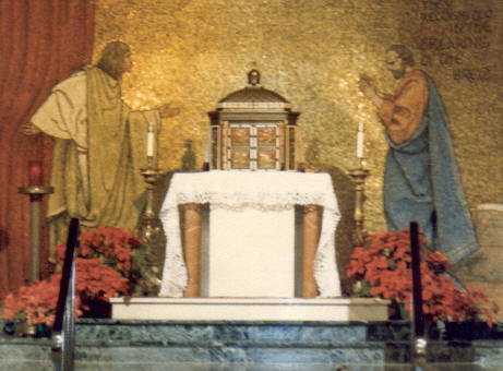 We believe that the Mass, celebrated by the priest representing the person of Christ by virtue of the power received through the Sacrament of Orders, and offered by him in the name of Christ and the members of His Mystical Body, is the sacrifice of Calvary rendered sacramentally present on our altars. We believe that as the bread and wine consecrated by the Lord at the Last Supper were changed into His body and His blood which were to be offered for us on the cross, likewise the bread and wine consecrated by the priest are changed into the body and blood of Christ enthroned gloriously in heaven, and we believe that the mysterious presence of the Lord, under what continues to appear to our senses as before, is a true, real and substantial presence.