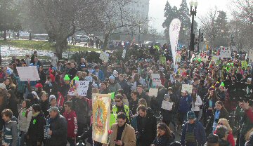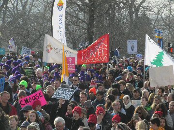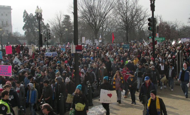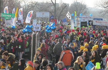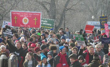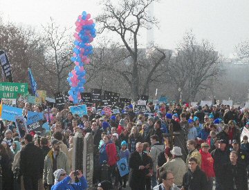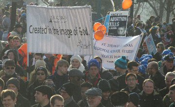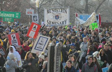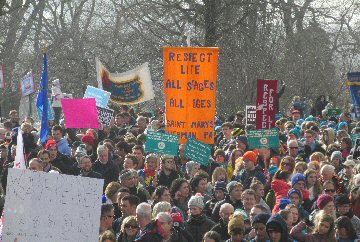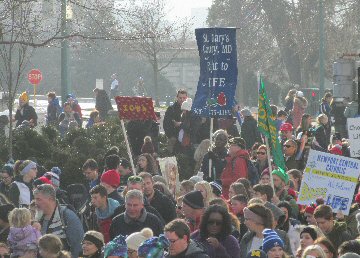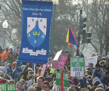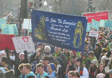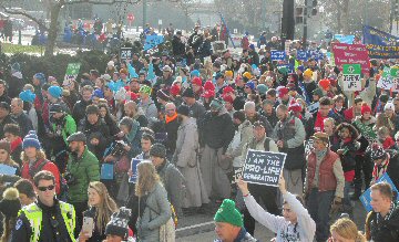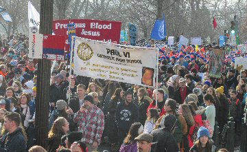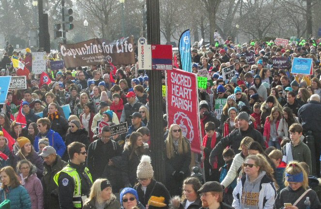 A week before the March For Life in 2019, the Washington Area suffered its first winter storm. The snow had just melted but there were news reports that more was coming. The morning was cloudy, but soon the clouds parted and the sun gave warmth to the marchers, some of whom had traveled many miles and represented many pro-life organizations. Everyone was united with the conviction that abortion results in the death of an unborn person. The rally before the march heard comments by President Trump who addressed them. Their presence showed opposition to the Supreme Court's decision that has allowed more than one million unborn babies to be murdered in the United States of America alone each year. Let us ask the Good Lord for courage and his strength to turn this decision around.