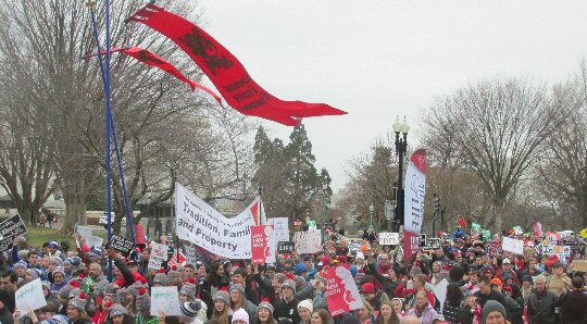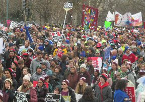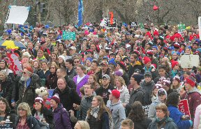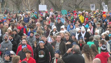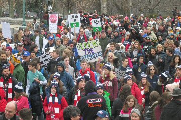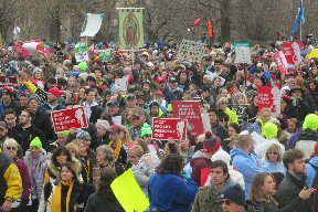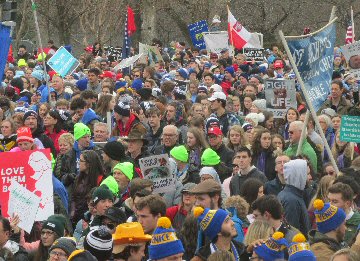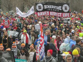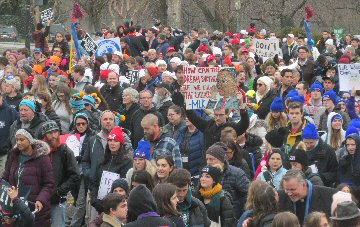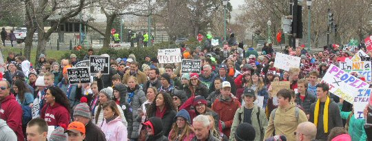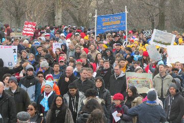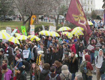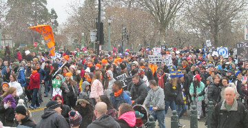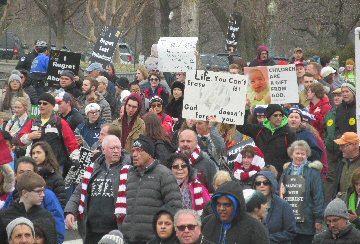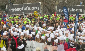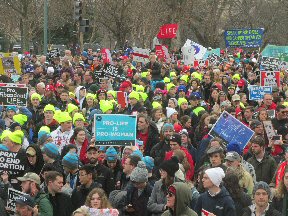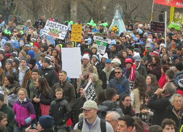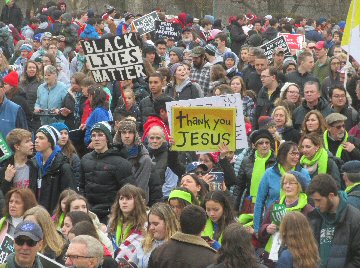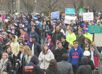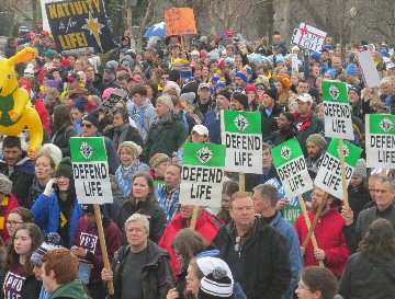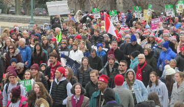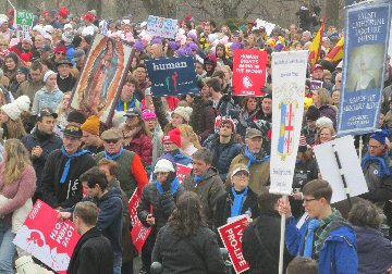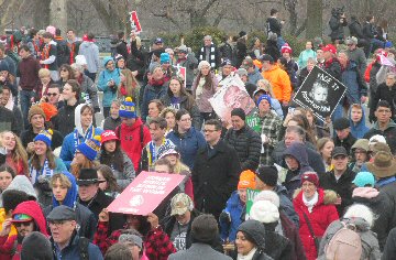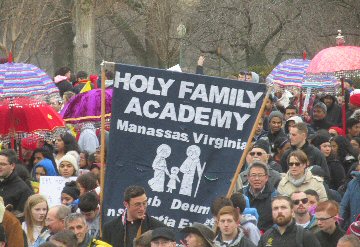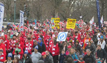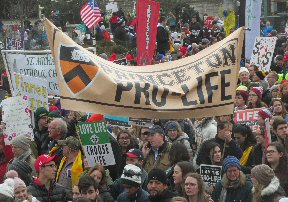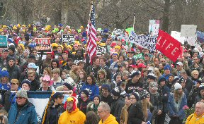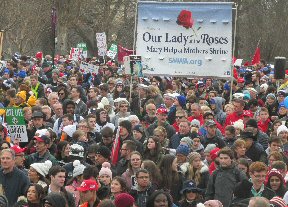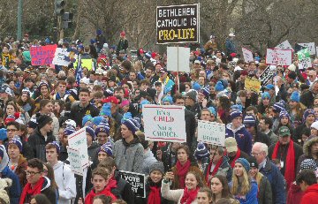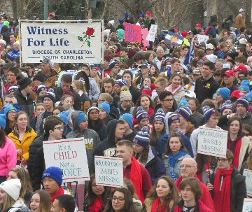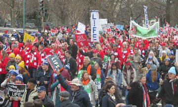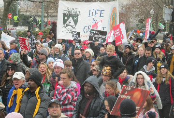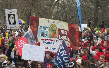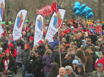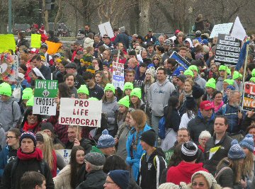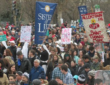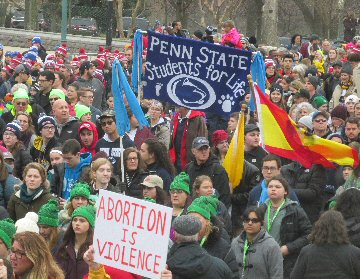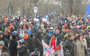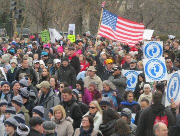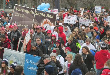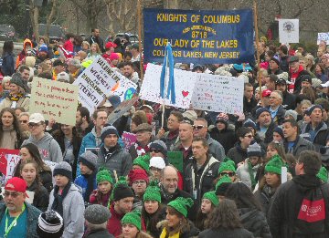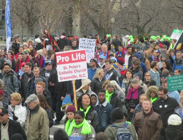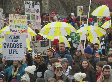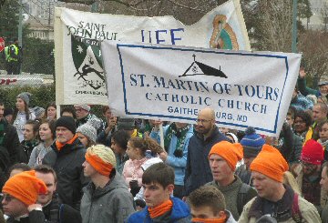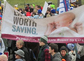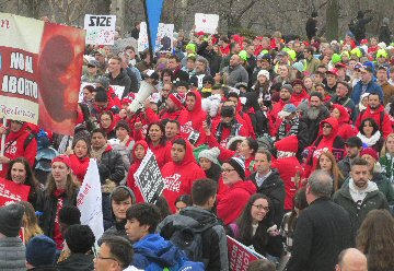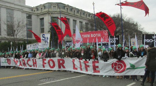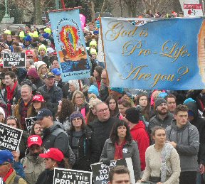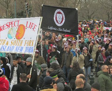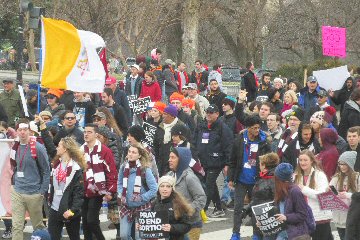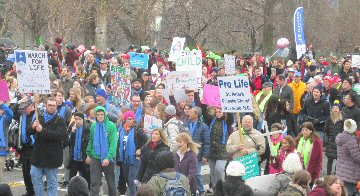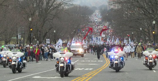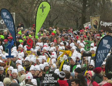 The marchers who gathered in Washington, D.C. for the National Right To Life March were greeted by mild cloudy weather, but before the actual march began, the almost 500 thousand persons who had gathered to show their support for life, were greeted by President Donald J, Trump who encouraged them by saying, "When we see the image of a baby in the womb, we glimpse the majesty of God's creation. . . Unborn children have never had a stronger defender in the White House.  And as the Bible tells us, each person is 'wonderfully made.'  We cannot know what our citizens yet unborn will achieve, the dreams they will imagine, the masterpieces they will create, the discoveries they will make.  But we know this: Every life brings love into this world.  Every child brings joy to a family.  Every person is worth protecting, and above all, we know that every human soul is divine, and every human life - born and unborn is made in the holy image of Almighty God.  I want to thank you.  This is a very special moment.  It's so great to represent you.  I love you all and I say with true passion: Thank you.  God bless you. And God bless America.  Thank you all.  Thank you."