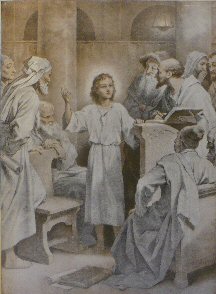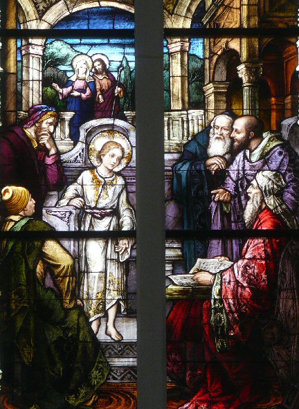 And when he was twelve years old, they went up to Jerusalem according to the custom of the feast (Passover). And after they had fulfilled the days, when they were returning, the boy Jesus remained in Jerusalem, and his parents did not know it. But thinking that he was in the caravan, they had come a day's journey before it occurred to them to look for him among their relatives and acquaintances. And not finding him, they returned to Jerusalem in search of him. And after three days, they found him, in the temple, sitting in the midst of the teachers, listening to them and asking them questions.