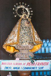 A duplicate carved image was made from the original icon in Spain and placed in the church in Nueva Caceres in the Bicol Region. Numerous miracles have been worked through intercessions to the Virgin Mary.