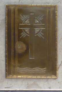The Priest Approaches and Kisses the Altar: The altar is a symbol of Christ. In it are cut five crosses to recall the five wounds of Christ. The altar also represents the Church and has embedded in it the relics of her saints. The priest comes to the altar to celebrate the Sacrifice in the Church's name. Because of the glory surrounding the altar upon which the divine Sacrifice will be made, the kiss of the priest unites the Church to Christ, its Redeemer.