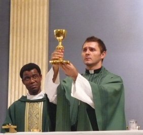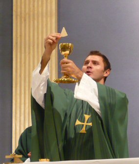 Priest: May this mingling of the Body and Blood of our Lord Jesus Christ bring eternal life to us who receive it.