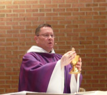 Priest: This is the Lamb of God who takes away the sins of the world. Happy are
