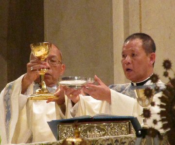 Priest: May this mingling of the Body and Blood of our Lord Jesus Christ bring eternal life to us who receive it.