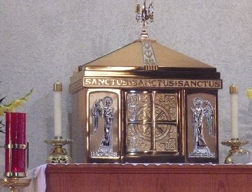 The Priest Approaches and Kisses the Altar:  The altar is a symbol of Christ.  In it are cut five crosses to recall the five wounds of Christ.  The altar also represents the Church and has embedded in it the relics of her saints.  The priest comes to the altar to celebrate the Sacrifice in the Church's name.  Because of the glory surrounding the altar upon which the divine Sacrifice will be made, the kiss of the priest unites the Church to Christ, its Redeemer.