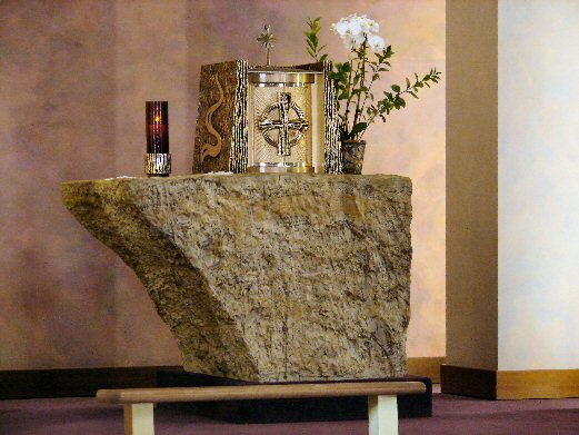 The Priest Approaches and Kisses the Altar: The altar is a symbol of Christ. In it are cut five crosses to recall the five wounds of Christ. The altar also represents the Church and has embedded in it the relics of her saints. The priest comes to the altar to celebrate the Sacrifice in the Church's name. Because of the glory surrounding the altar upon which the divine Sacrifice will be made, the kiss of the priest unites the Church to Christ, its Redeemer.