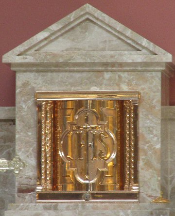 The Priest Approaches and Kisses the Altar:  The altar is a symbol of Christ.  In it are cut five crosses to recall the five wounds of Christ.  The altar also represents the Church and has embedded in it the relics of her saints.  The priest comes to the altar to celebrate the Sacrifice in the Church's name.  Because of the glory surrounding the altar upon which the divine Sacrifice will be made, the kiss of the priest unites the Church to Christ, its Redeemer.