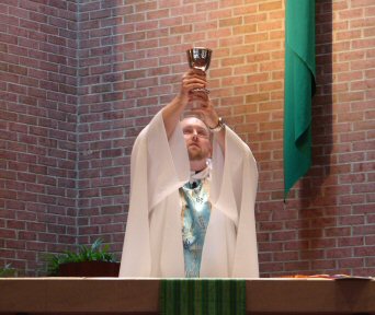 n the Liturgy of the Eucharist, we symbolically offer ourselves to the Lord through the gifts of bread and wine.  At the Consecration, we offer our very lives to be united the God the Father through the Cross of Christ.  In Communion, we find that we have not died at all, but have come to life.  We have surrendered ourselves to God through His Divine Son, Jesus Christ.  In return become ennobled and enriched.  We give up time and we get eternity, we give up our sin and we receive grace, we surrender our self-will and receive the strength of the Divine Will, we give up ourselves and we receive everything.  For the Son of God says to us that unless we receive Him we shall not have Divine life in us.  But it is not really we who receive Christ as it is Christ who receives us, bringing us into Himself.