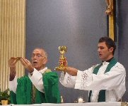 Priest: May this mingling of the Body and Blood of our Lord Jesus Christ bring eternal life to us who receive it.