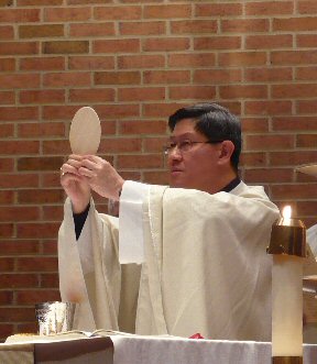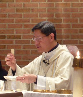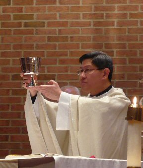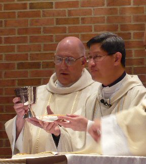 Priest: May this mingling of the Body and Blood of our Lord Jesus Christ bring eternal life to us who receive it.